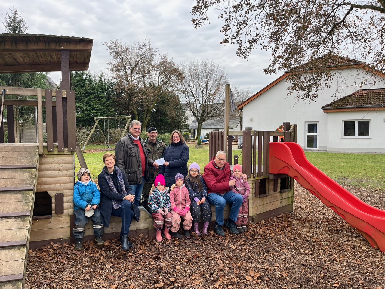 Der Traditionsverein FahrSimKette Augustdorf e.V. hat in der Adventszeit der evangelisch-reformierten Kita Arche eine Spende in Höhe von 250 Euro überreicht. Die symbolische Übergabe fand auf dem großen Kletterschiff des Kindergartens statt – passend zum Verwendungszweck: Die Spende soll in die Erweiterung des Kletterparcours vor der Einrichtung fließen und dort direkt den Kindern zugutekommen — eine Ergänzung, die auf große Begeisterung trifft.